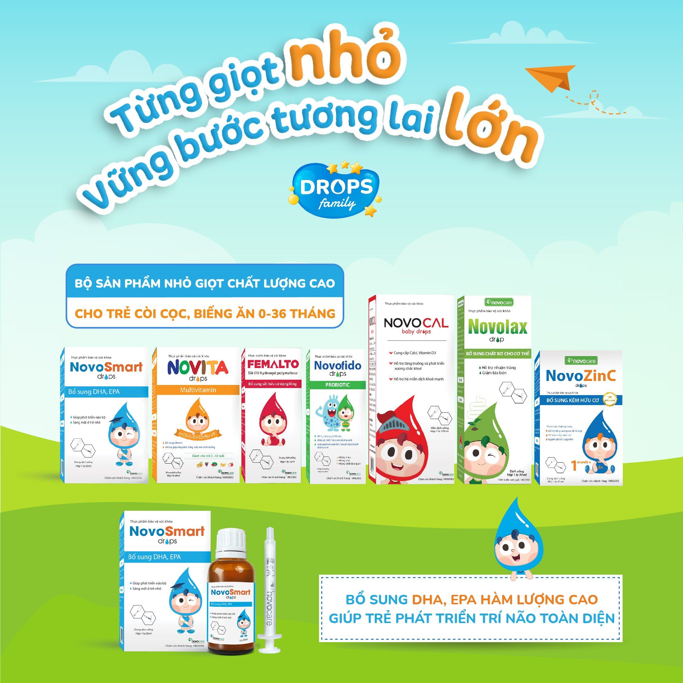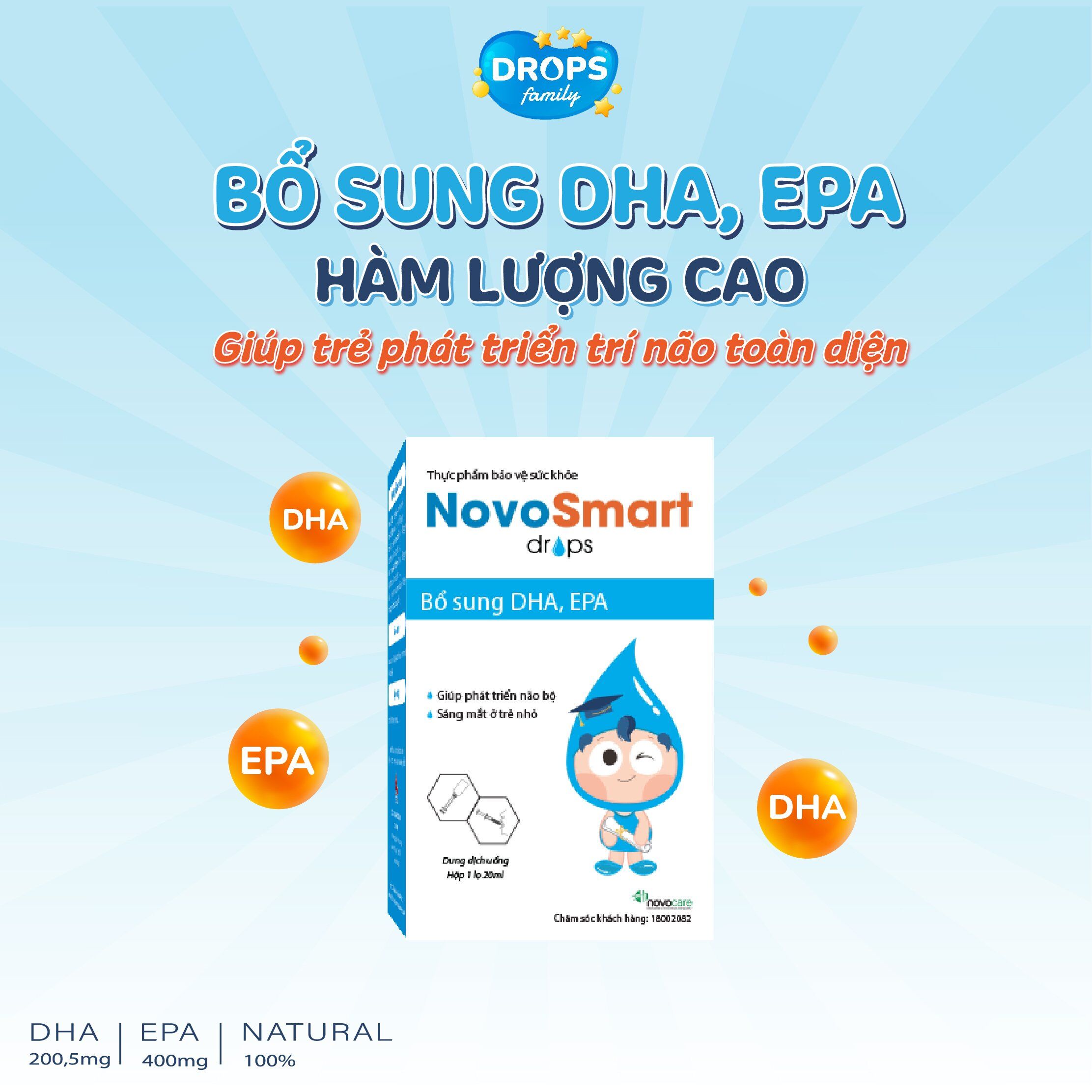 NovoSmart Drops – Bổ sung DHA, EPA hàm lượng cao – Giúp trẻ phát triển trí não toàn diện.